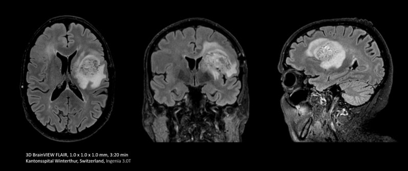 With Compressed SENSE you can replace your single orientation 2D FLAIR scan with a multi-orientation 3D volumetric FLAIR scan in only 3 and a half minutes scan time.