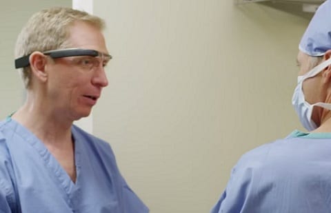 الدكتور دايفد فاينستاين مع مطورين من Philips وAccenture لاختبار نظارات Google Glass في مختبرات Digital Accelerator Lab.